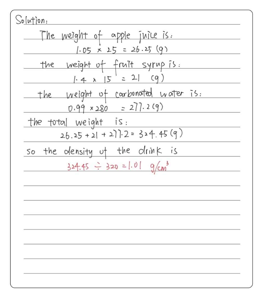| Read The Density Of Apple Juice Is 1 05 Grams Per Cm3 Gauthmath |